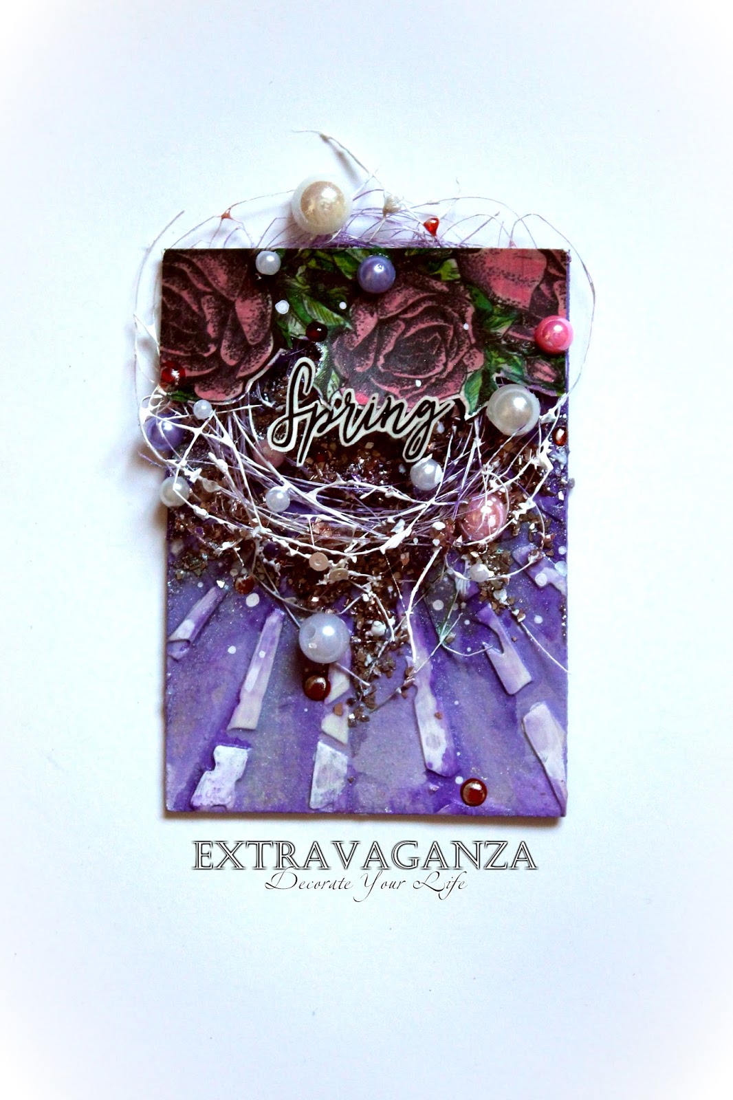 J'ai collé des perles de différente tailles avec du Gel Médium pour finir ma carte.