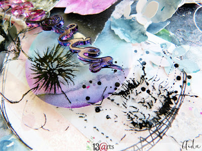 For the layers I used mostly circles, some painted by myself flowers and foil. There is also a white thread to add some lightness.