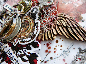 Cześć! Tym razem chciałabym wam pokazać moje mixed mediowe serducho. praca powstała przy użyciu nowych farb Color Glow i kolekcji Victoriana. W tle widzicie folie z kolekcji Victoriana, którą miejscami przygessowałam i postemplowałam stemplami z tej samej kolekcji. Kolory to Tiger Eye i Fire Opal z serii Color Glow - farbki możecie użyć mieszając z wodą (efekt widać w tle) lub z ciekłym medium, co daje lepsze krycie i wodoodporność (na skrzydłach).