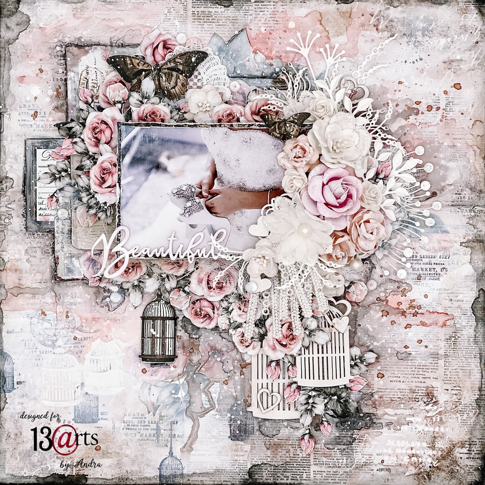 Time for the last, but equally beautiful collection - Rosalie. It also contains big and small pads, masks, stickers, foils, stamps ... everything you need to create beautiful works. Here's what our team created: