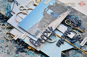 it's still cold and wet outside, then I decided reminisce about summer days. I chose photo and I've made layout with mamories in beautiful shades of the blue color.